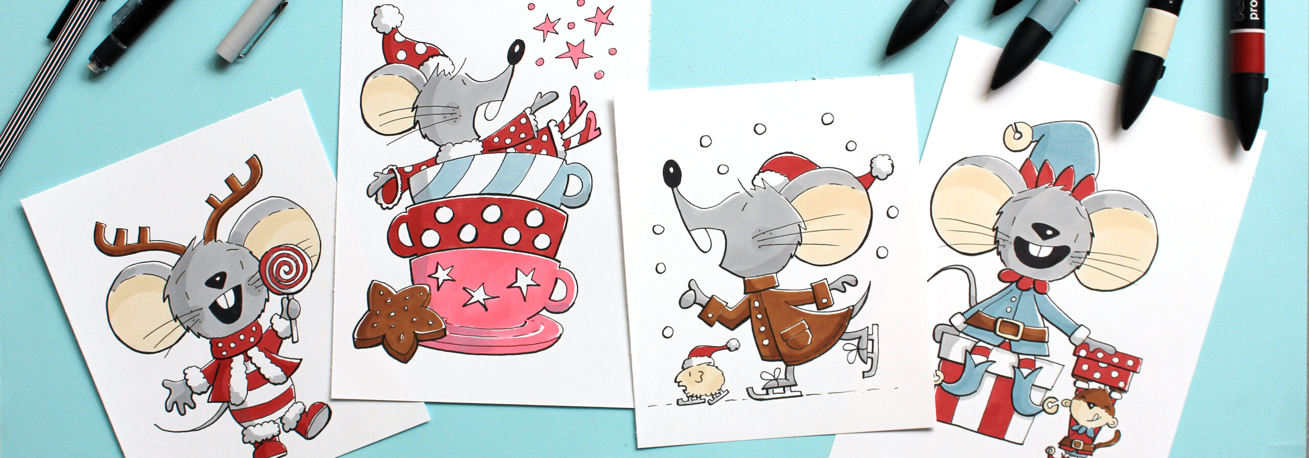 In deze lessen laat ik je stap voor stap zien hoe je eenvoudig beweging toevoegt aan je tekeningen. Je leert onder andere hoe je de muisjes op een cadeautje laat zitten (en dat trucje kun je straks óók gebruiken voor een stoel, bank… noem maar op!). Kortom: een flinke dosis inspiratie om de koude winterdagen heerlijk creatief door te komen.